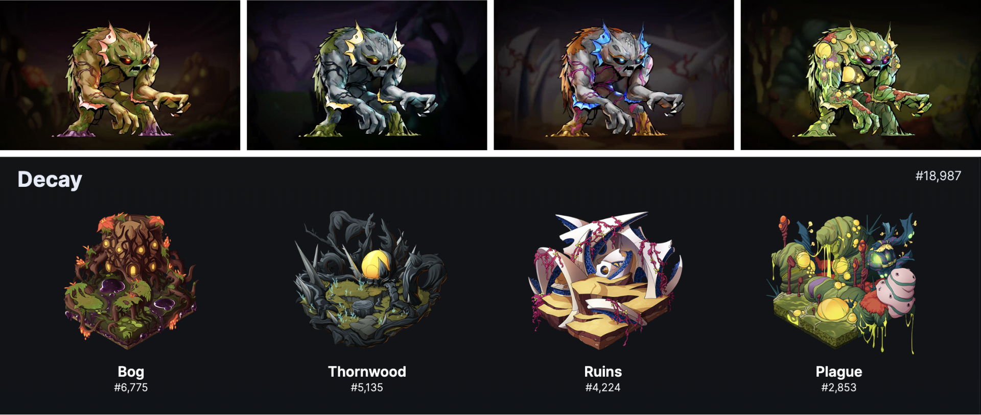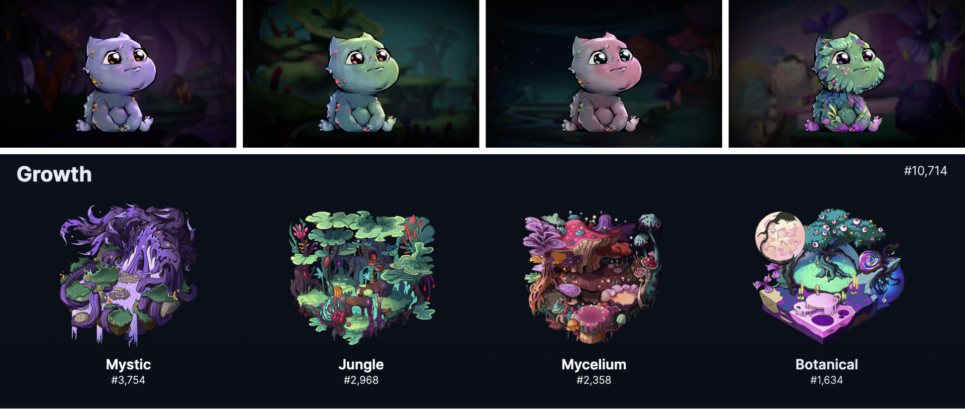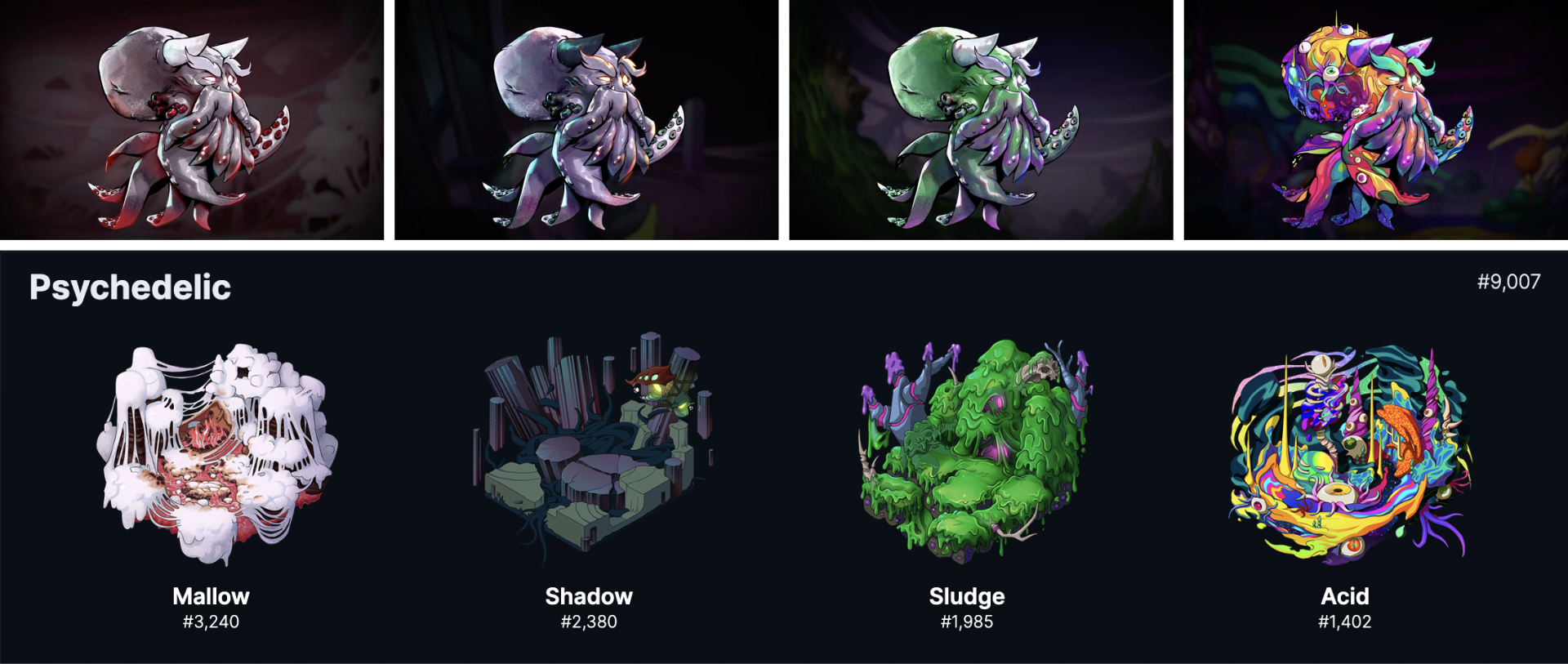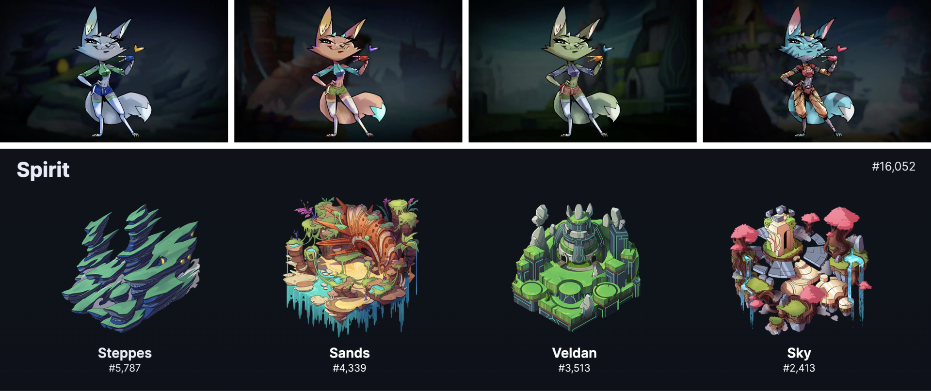 There are seven different characters. Each character belongs to a certain kind of Otherdeed environment.